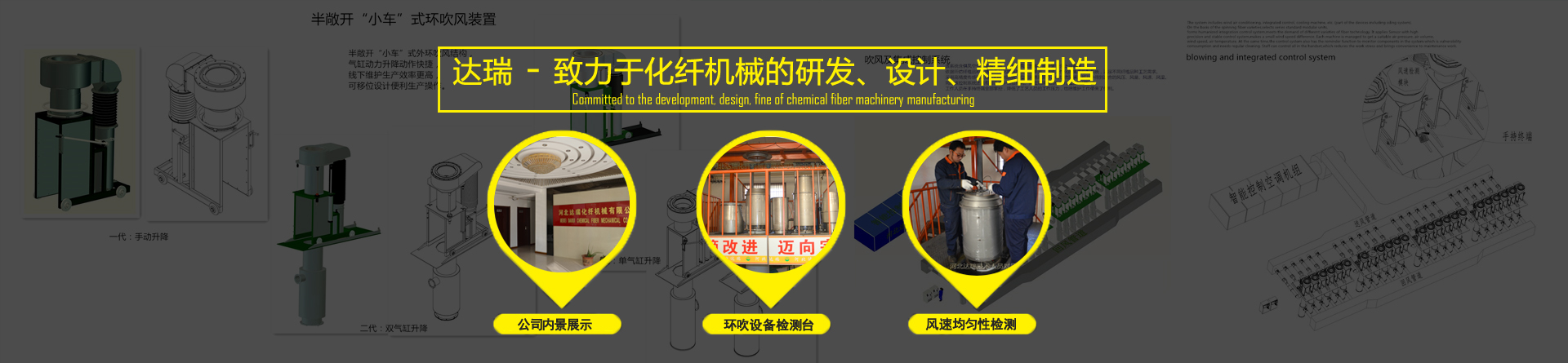 河北達瑞化纖機械有限公司,自2004年注冊成立以來,已為國內、外百余家大中型化纖企業和工程公司提供了產品或服務。公司致力于化纖機械的研發設計和精細制造。憑借多年行業經驗積累,公司擁有了一支設計及生產現場經驗豐富的技術團隊和高水平員工隊伍。特別是本公司生產的“絲束冷卻吹風裝置”及相關設備得到了國內外用戶的高度認可,具有很強的競爭優勢?!?/span>
